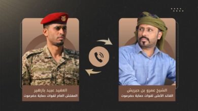 خلال اتصاله بالمفتش العام..الشيخ بن حبريش يشدد على ضرورة الإسراع في الترتيبات الجديدة الخاصة بقوات حماية حضرموت لتطوير الأداء العملياتي…