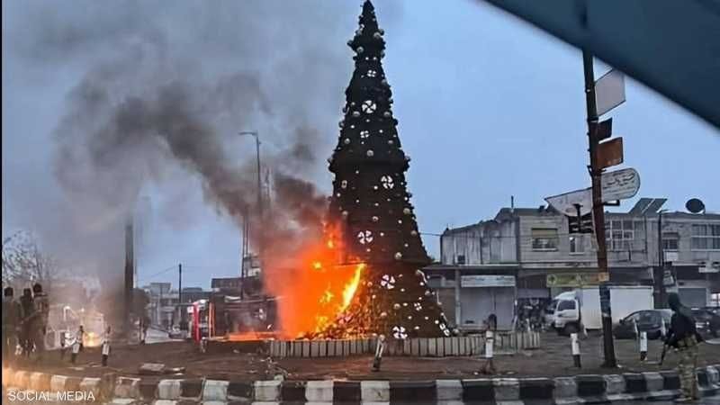 عنصر بهيئة تحرير الشام يعلّق على إحراق شجرة الميلاد بحماة