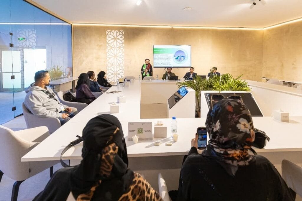 BCHR, represented by the Head of Partnerships and Grants Department, Eng. Ahmed bin Hamel, External Relations Officer, Ms. Wadha Al-Salwi, member of the Climate Unit, Eng. Naji Bajahaw, in partnership with the Bina Foundation for Development, and a representative of the WFP, Ms. Maha Al-Badani, presented the BCHR efforts in combating desertification. These were presented through agricultural land reclamation projects, greenhouses, water resource rehabilitation, and the introduction of modern technologies such as hydroponics.
