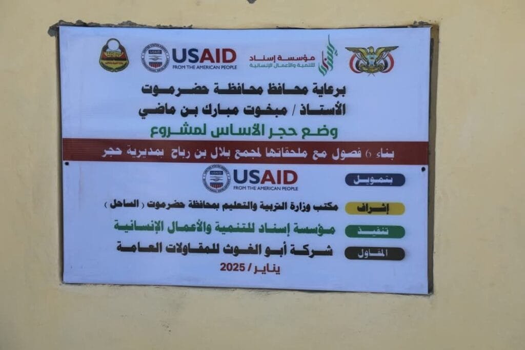 الأمين العام لمحلي حضرموت يضع حجر الأساس لبناء فصول دراسية بمنطقة جزول ويطلع على مشروع “الوصول إلى التعليم بالريف”