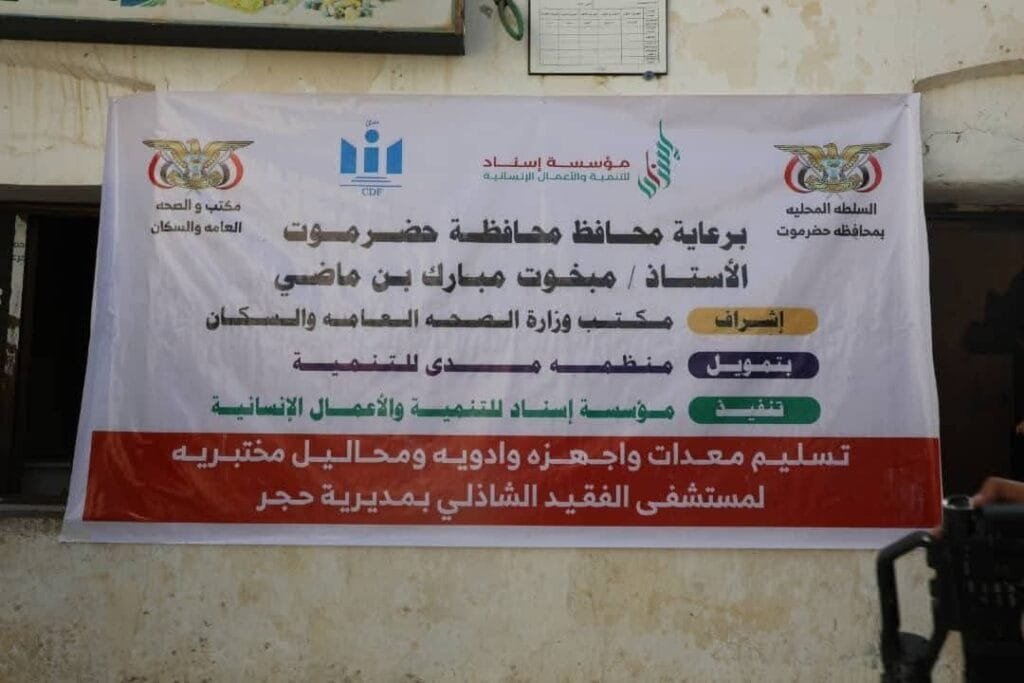 أمين عام محلي حضرموت يُسلم مستلزمات وأجهزة طبية مقدمة من مؤسسة” إسناد ” لدعم مستشفى الفقيد الشاذلي بمديرية حجر