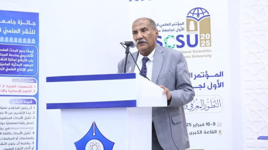 بدوره أعرب رئيس جامعة سيئون أ. د محمد عاشور الكثيري عن سعادته لنجاح هذه الفعالية العلمية، مؤكدا أن الجامعة تسعى ضمن توجهاتها لتطوير البحث العلمي وربطه بقضايا المجتمع، معلناً عن أشهار جائز جامعة سيئون للنشر العلمي 2025 في مجالات الخصصات الطبية والتخصصات العلمية والتطبيقية والعلوم الانسانية والادارية.