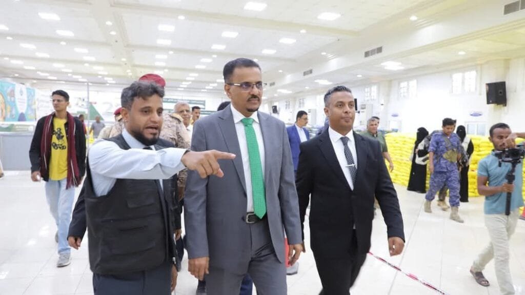 واستمع الأمين العام، من المدير التنفيذي للمؤسسة الدكتور محمد صالح باجرش، ومدير المعرض أكرم باحميش، إلى سير الترتيبات في عملية التسجيل وسهولة دخول المواطنيين بصورة انسيابية لقضاء حاجياتهم الأساسية للشهر الفضيل، ويوفر المعرض فرص عمل لنحو 150 شاب وشابة، ويستفيد منه قرابة 30 ألف أسرة من مختلف مناطق مدينة المكلا.