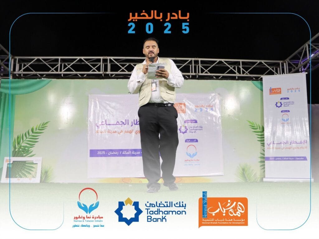 في إطار تعزيز قيم التكافل الاجتماعي وإدخال الفرح على قلوب الفئات الأكثر احتياجًا، شهدت مدينة المكلا بمحافظة حضرموت فعالية إفطار جماعي في حديقة المكلا بارك، استهدفت الأيتام وذوي الهمم من مختلف المؤسسات والجمعيات المعنية برعايتهم وتأهيلهم.