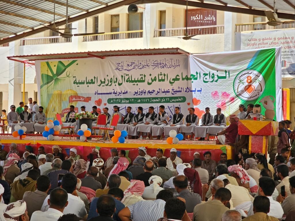 من جانبه عبر الشيخ عوض محمد باوزير رئيس اللجنة المنظمة، عن سعادته بإقامة هذا الحدث السنوي الذي أصبح علامة مضيئة في سجل القبيلة، مؤكدا أن قيادة القبيلة اتخذت قرارات حاسمة لتخفيض المهور وتكاليف الزواج في سبيل التيسير على الشباب ومساعدتهم على بناء أسر مستقرة.