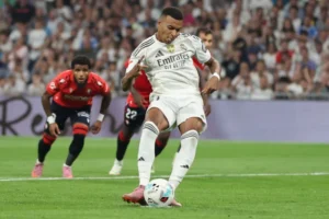 وحقق ريال مدريد أول انتصاراته في الموسم الجديد (2025-2026) من علامة الجزاء أيضا بعد أن احتسب الحكم أدريان كورديرو فيغا ركلة جزاء لصالح الفرنسي كيليان مبابي، سجل منها اللاعب نفسه هدف فريقه الوحيد ضد أوساسونا في منتصف الأسبوع الماضي على ملعب سانتياغو برنابيو.