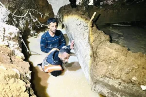 وأظهرت مشاهد من موقع الحادث طواقم الدفاع المدني وهي تخوض في مياه موحلة داخل حفرة غمرتها الأتربة، معتمدة على المصابيح اليدوية وأجسادها للوصول إلى عمق البئر، في سباق مع الزمن وسط ظروف بالغة الخطورة.