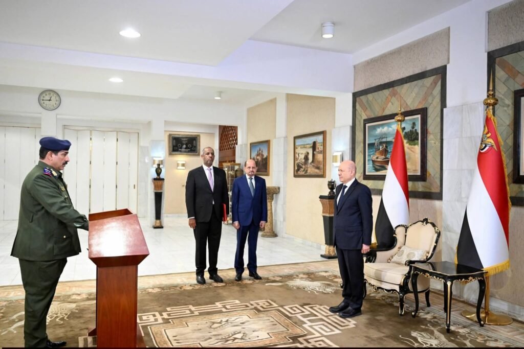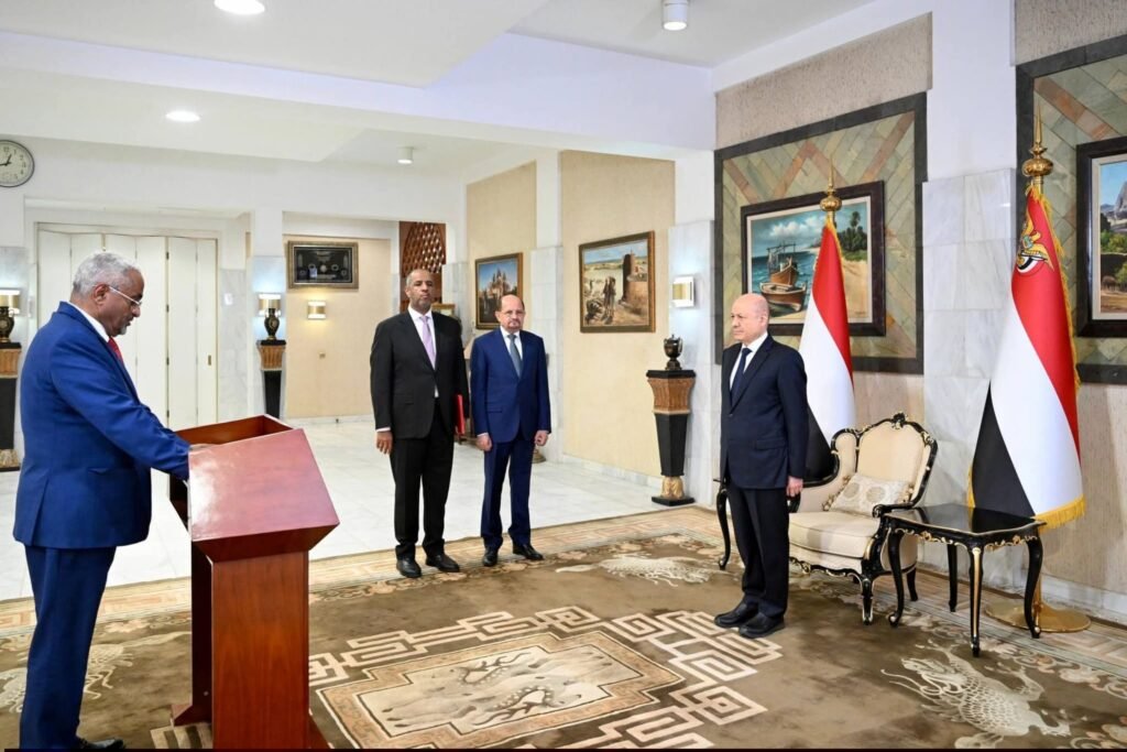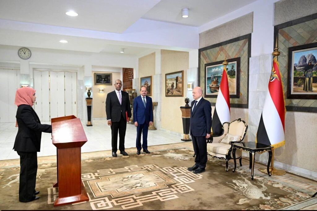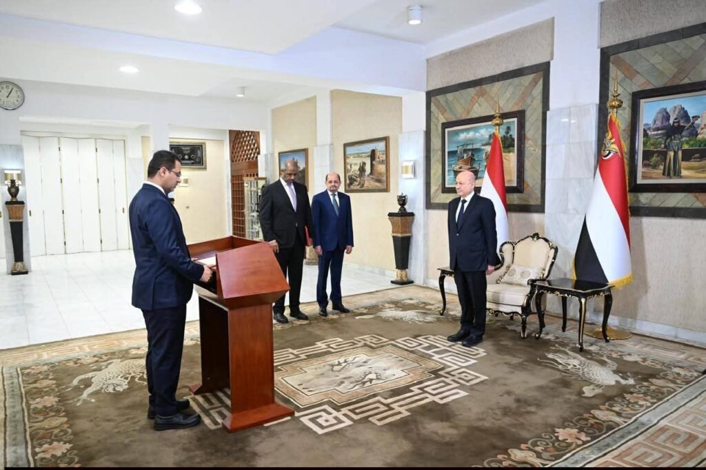 رئيس وأعضاء الحكومة يؤدون اليمين الدستورية أمام رئيس مجلس القيادة الرئاسي