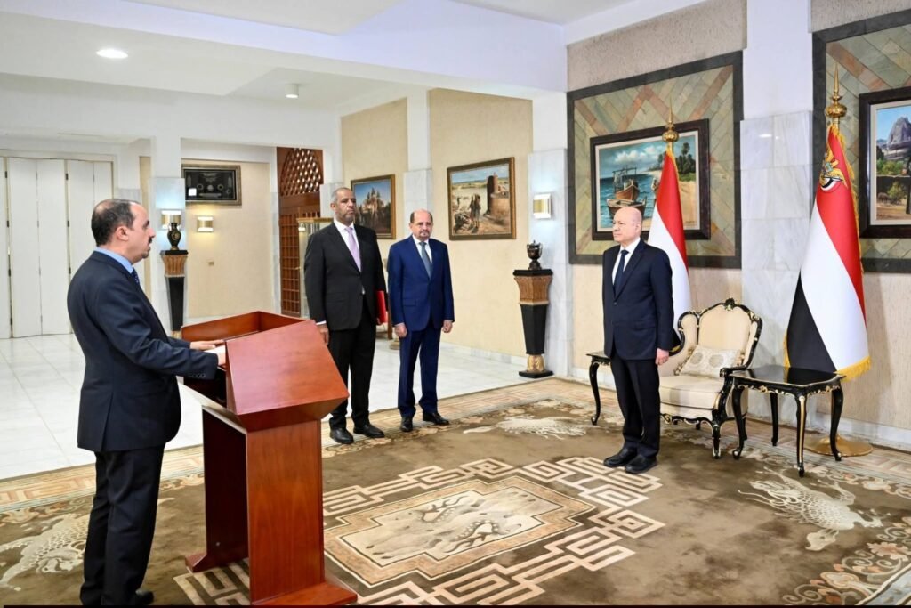 أدى اليمين الدستورية أمام فخامة الرئيس الدكتور رشاد محمد العليمي، رئيس مجلس القيادة الرئاسي، اليوم الإثنين، الدكتور شائع محسن الزنداني بمناسبة تعيينه رئيساً لمجلس الوزراء وزيراً للخارجية وشؤون المغتربين.