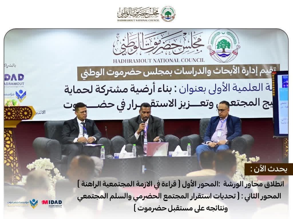 مجلس حضرموت الوطني ينظم ورشة علمية لحماية النسيج المجتمعي وتعزيز الاستقرار في حضرموت