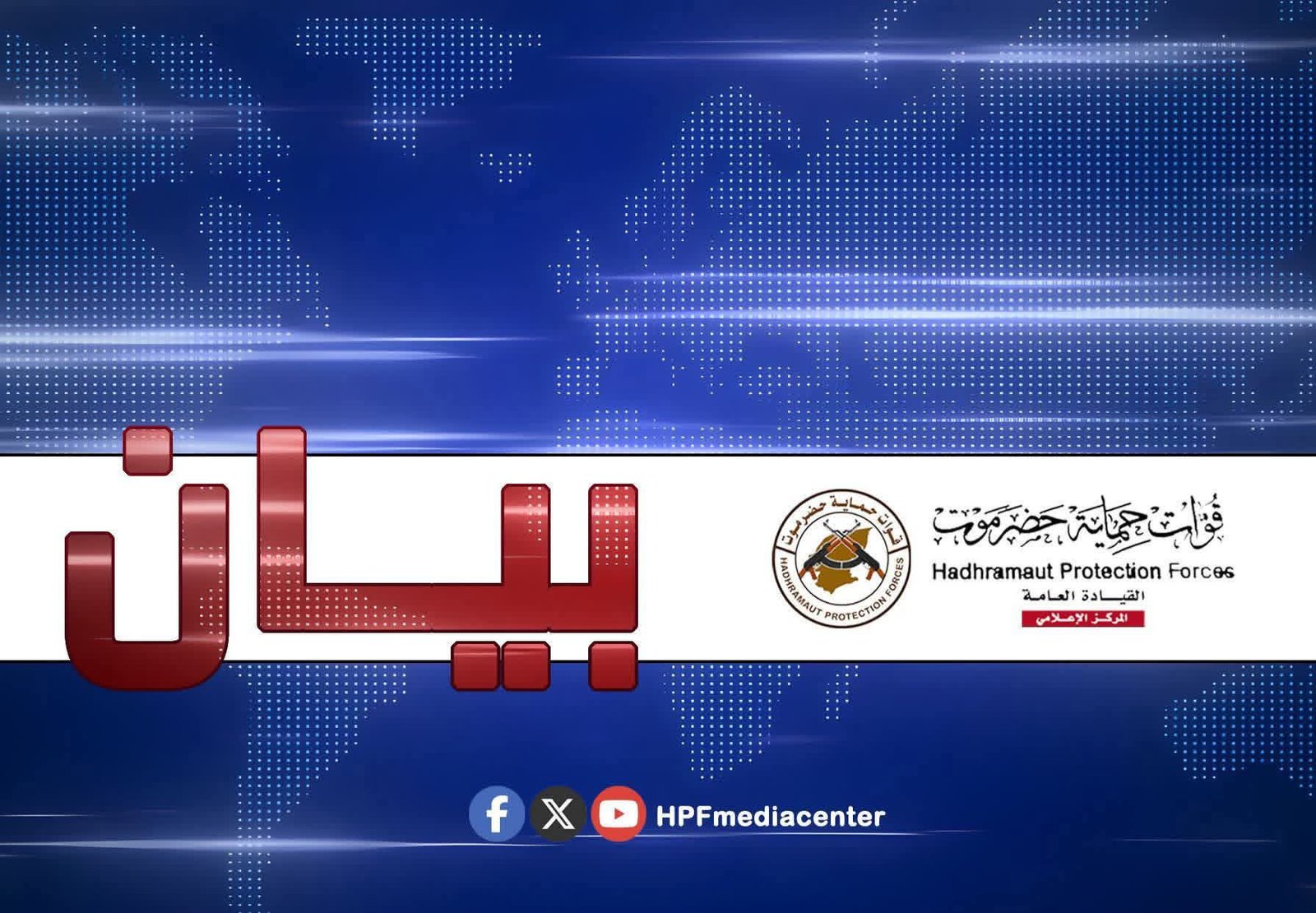 تهيب القيادة العامة لقوات حماية حضرموت بكافة منتسبيها من الضباط والأفراد الالتزام التام والحصري بالتعليمات والتوجيهات الصادرة عبر القنوات الرسمية المعتمدة