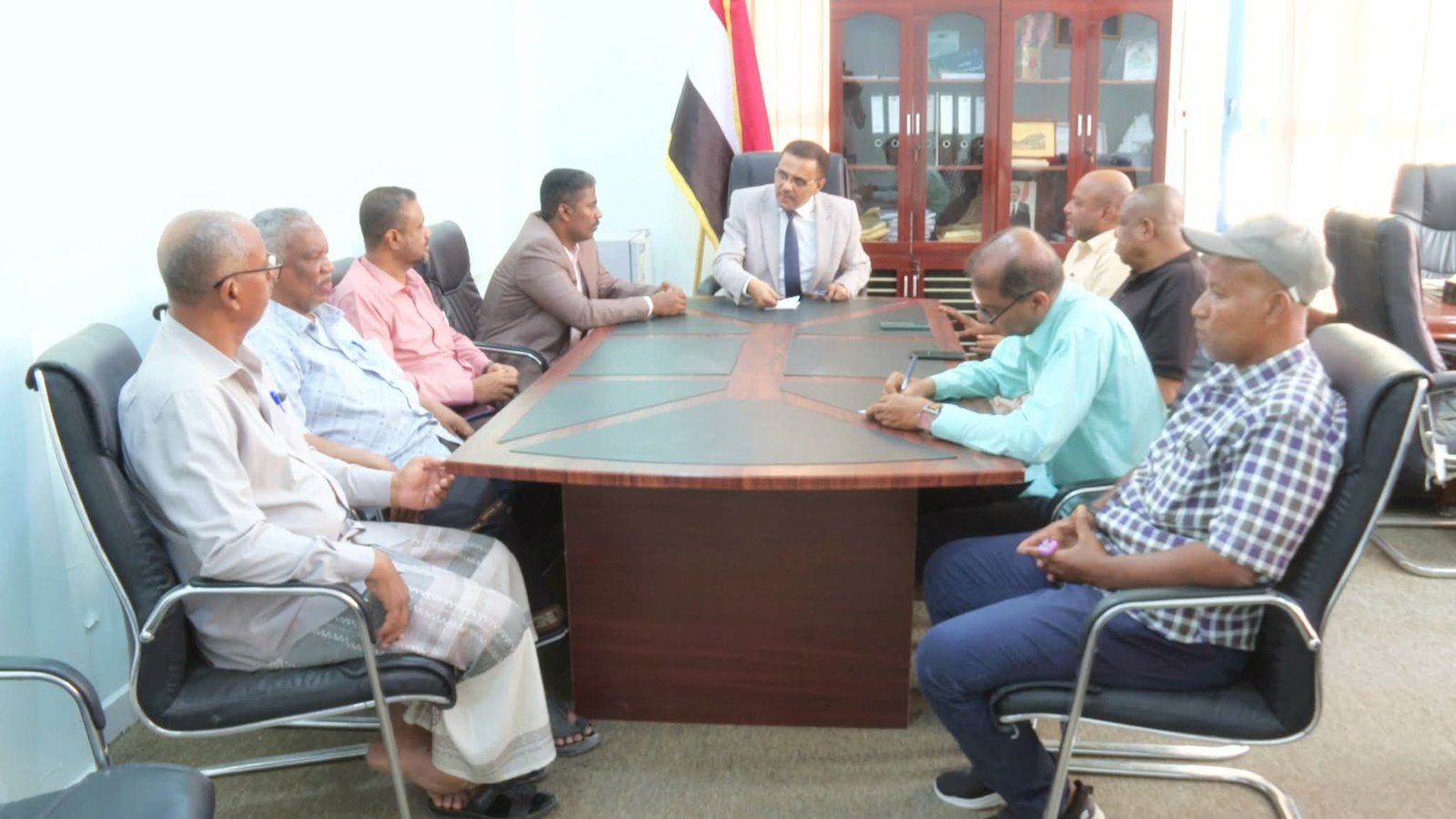 أمين عام محلي حضرموت يترأس اجتماعاً للجنة المناقصات بالمحافظة ويقر ترسية مشروع تسوير وتخديم الساحة العامة للمعهد الفني بالشحر