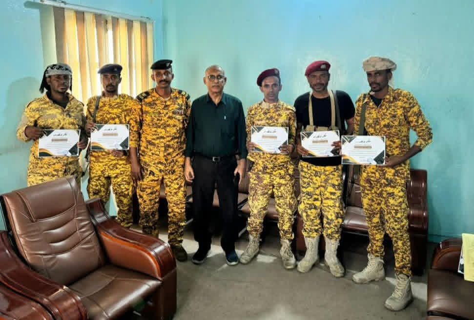رئيس نيابة استئناف حضرموت يكرّم أفراد الحراسة تقديرًا لجهودهم في حماية مقر النيابة بالمكلا