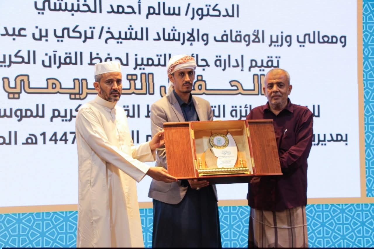 الوكيل الجيلاني يشهد الحفل التكريمي لجائزة التميز لحفظ القرآن الكريم في موسمها الرابع بالمكلا