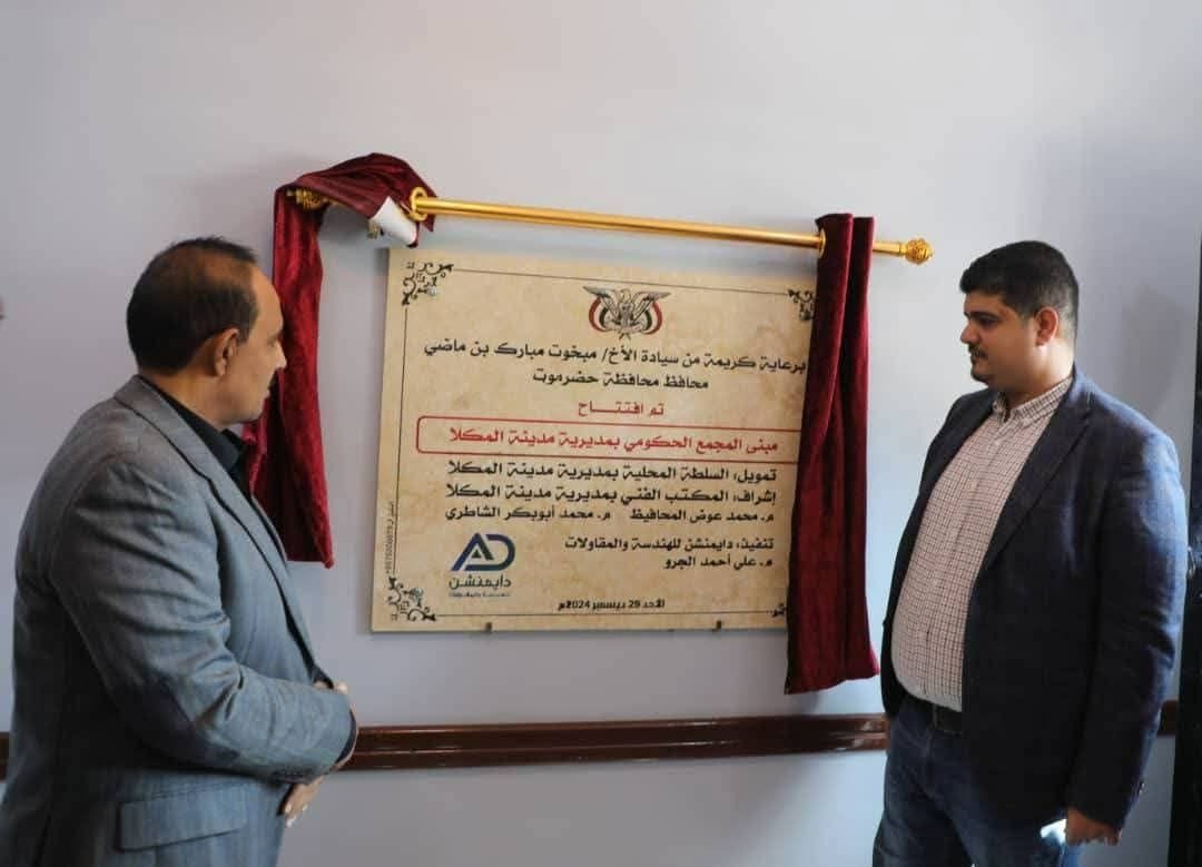 المحافظ بن ماضي يفتتح مبنى المجمع الحكومي بمديرية مدينة المكلا