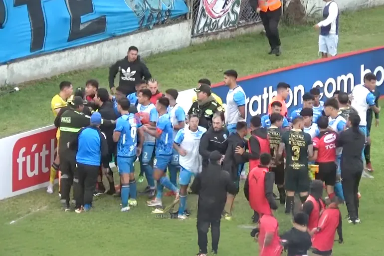 شاهد.. اشتباكات عنيفة وطرد 7 لاعبين وغاز مسيل للدموع بالدوري البوليفي