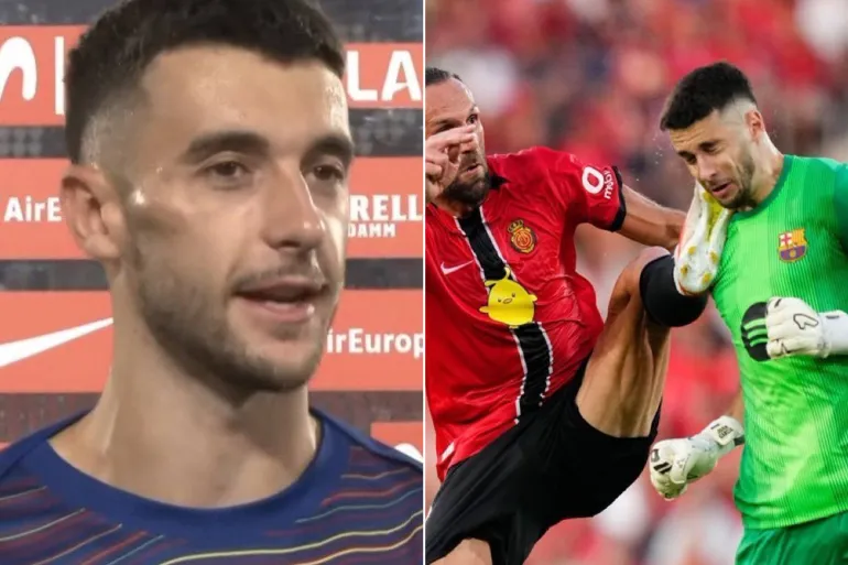 غارسيا حارس برشلونة بوجه منتفخ بعد تدخل مهاجم مايوركا العنيف