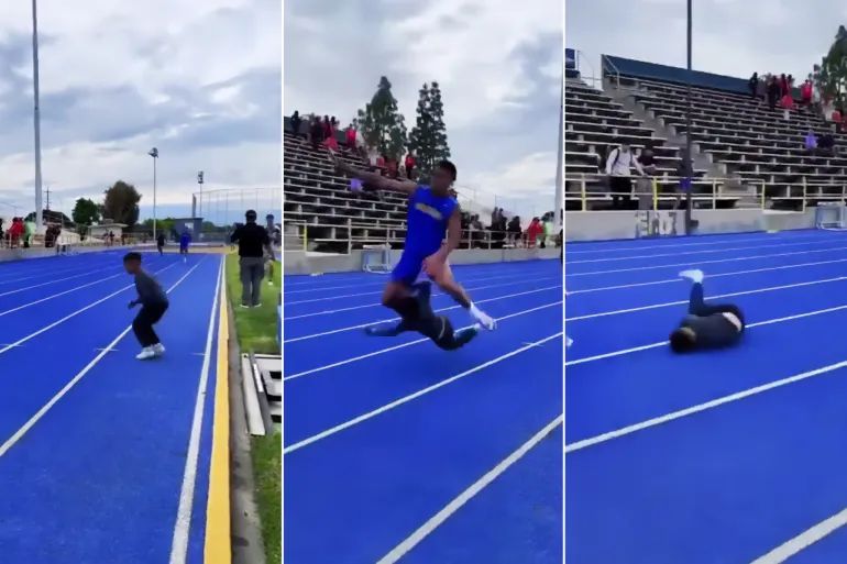 ظهرت لقطات فيديو كيف عاش طفل صغير لحظات من الرعب بعد أن صدمه أحد العدائين بعد اقتحام الطفل المضمار خلال…
