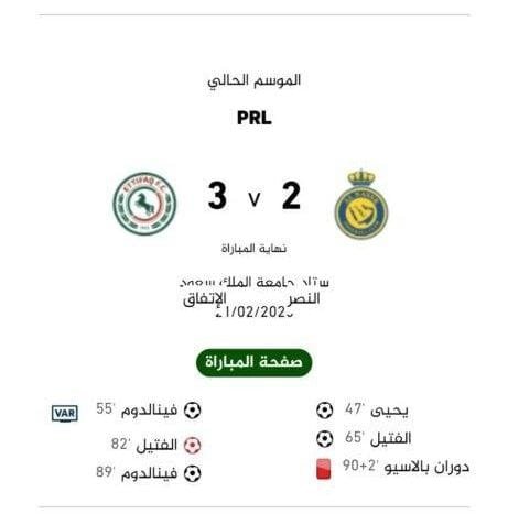 أنهى الاتفاق سلسلة من خمسة انتصارات متتالية للنصر وتغلب عليه 3-2 في مباراة مثيرة -الجمعة- ضمن الجولة 21 من الدوري…