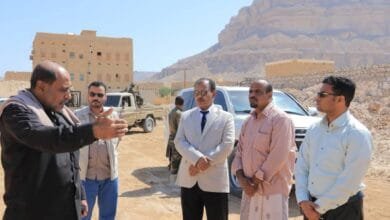 الوكيل العامري يتفقد مستوى الاعمال الجارية بمشروع منشآت نادي الإتفاق بالحوطة بمديرية شبام